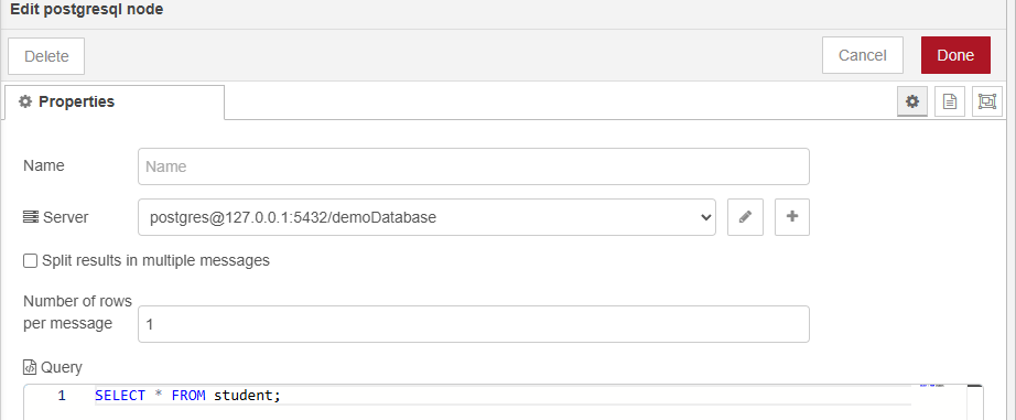STEP 03. Insert PostgreSQL properties(credentials, port etc), we must have a demoDatabase in PostGreSQL server and a table student
