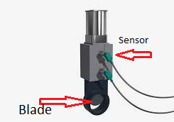 In this tutorial, we shall use a simple knife gate valve. We assume that this one is a pneumatic valve. The valve is opened when a solenoid is active (the output is ON). When the solenoid is ON then compressed air pushes the valve’s blade to the upper direction and the blade goes up. There are two proximity sensors for the valve. When the valve is fully open, the blade is in the upper position, and both proximity sensors are ON. If the lower one is ON and the upper one is OFF then the valve is half open. When the solenoid is OFF then the valve’s spring force pushes the blade to close the valve. When the valve is closed then both proximity sensors are OFF.