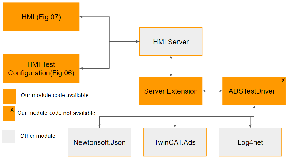 In the following figure, we can see the architecture of the test system. The system use the ADS library provided by Beckhoff.