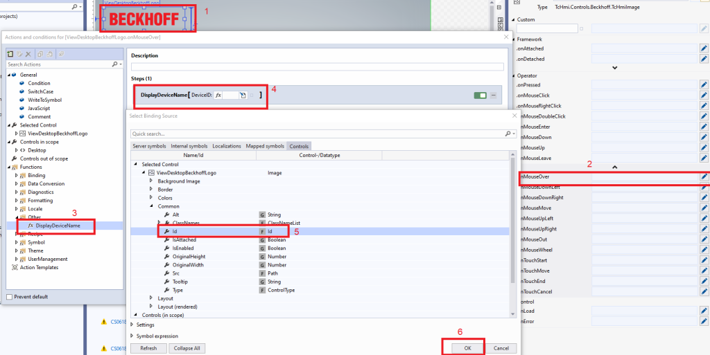 4 => Select the id of the control (remember to change the ID as PressureSensor_1), this will call the JS with this as a parameter