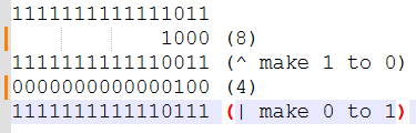 Now again we use mask 100 (4) and apply OR and get 1111111111110111 (65527)